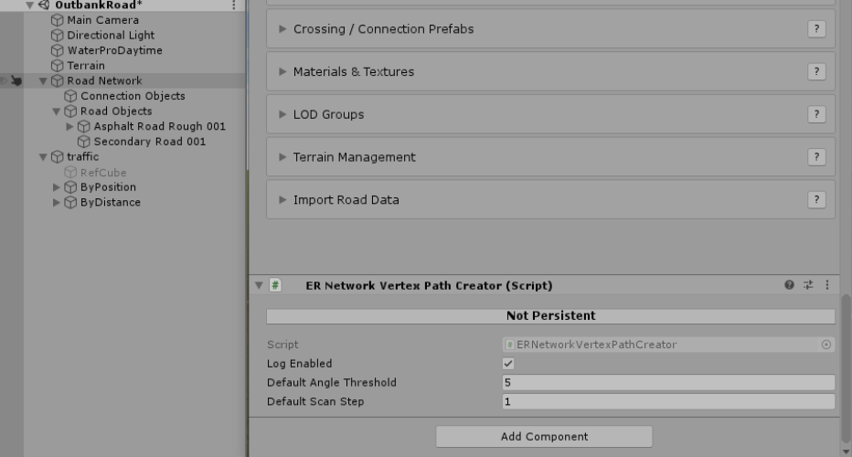 ERNetworkVertexPathCreatorto ER Road Network It will add (if not exists)ERNetworkVertexPathCreatorandERPathAdapterto anyERModularRoadfrom children.ERNetworkVertexPathCreatorwill create vertex path based on ER spline path with givenangleThresholdandscanStepERPathAdapterwill provide API to align objects along the path and calculate nearest position and distance. - Add